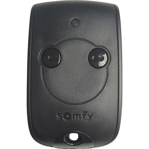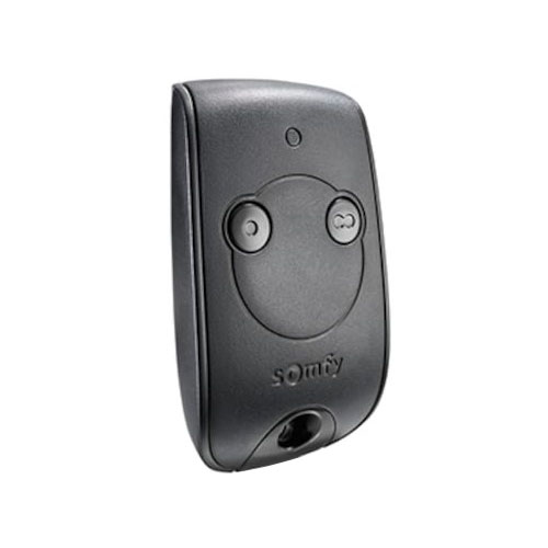 2-channel remote. One button per channel. One button opens, stops, and closes the door.